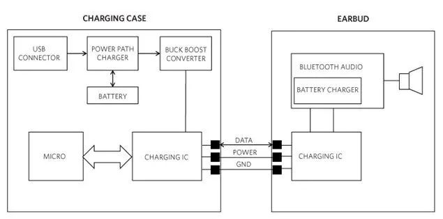传统的 TWS 充电过程中,需要使用 3 个或更多的引脚,其中两个引脚用于充电,其他引脚用来在充电盒和耳机之间建立通信(或数据)通道,一方面跟踪耳机电池的充电状态以便对充电过程进行调控,另一方面实现设备固件升级和 / 或用于工厂调试,在一些方案中还使用专用的(pogo)引脚检测耳机是否被放入充电盒。但更多的引脚,也就意味着电路布线的复杂性会增加,而且会在可靠性上引入额外的风险。