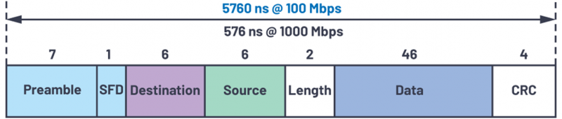 其中 58 × 80 ns 表示前导和目标地址字节被读取后,余下的 58 字节有效载荷。