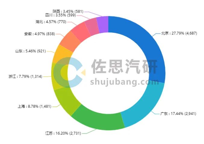 从中国各省市申请数量来看,北京、广东、江苏、上海、浙江排前五位。