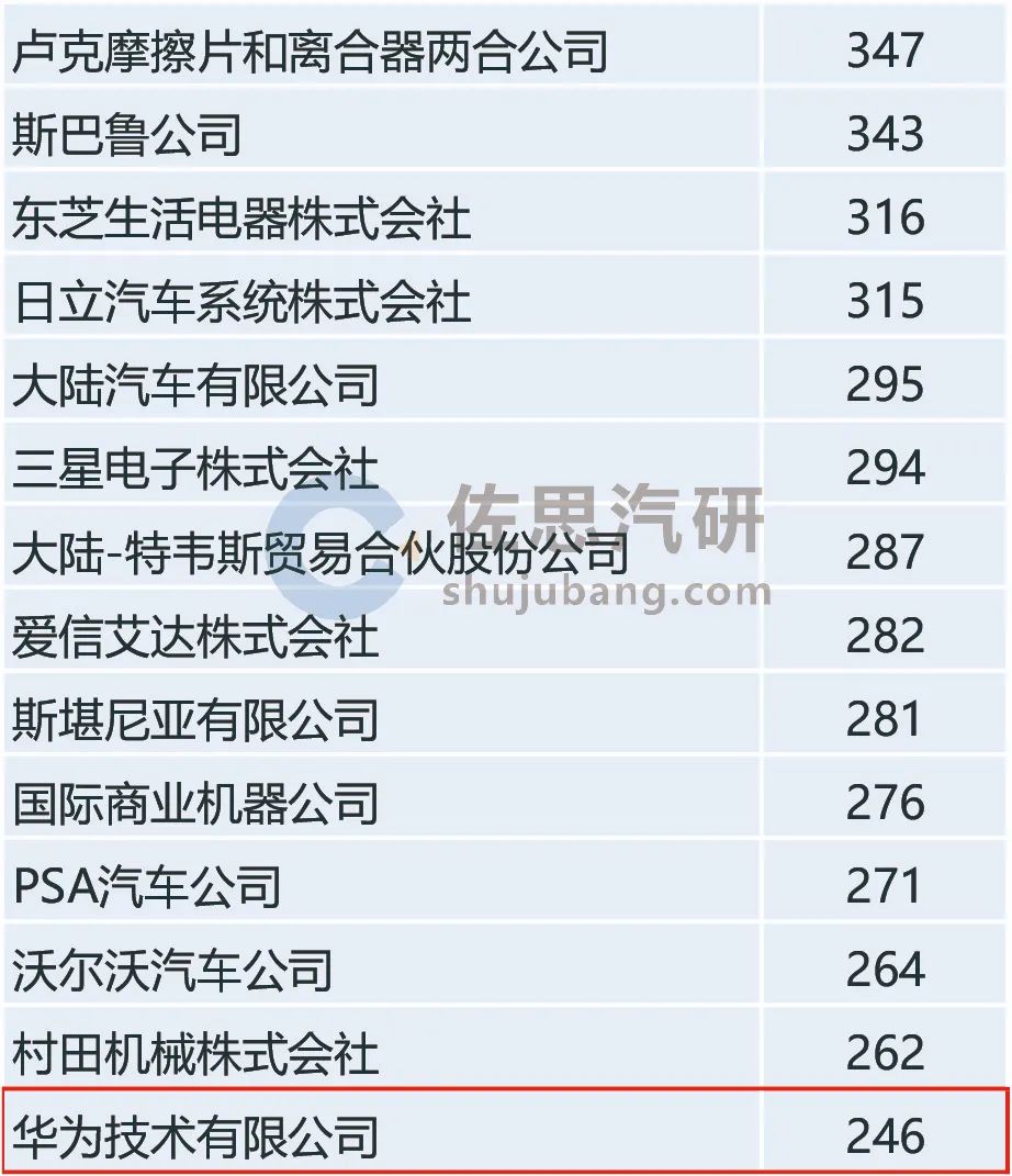 令人惊讶的是,华为在底盘和线控领域的专利数量颇多,说明华为早已布局底盘和线控领域。