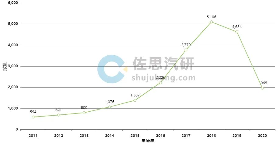 同样的检索 2001 年以来的激光雷达专利数量,总体上是逐年上升的趋势。