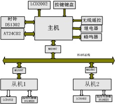 主机和从机选用STC89C52单片机,通过RS-485总线进行数据通信。主机采用LCD2002显示各从机的温度和当前时间,根据按键或无线遥控的输入命令对控制温度上限值、温度报警值和时间进行设置,并通过RS-485总线传递温度报警值给从机和读取从机温度。从机通过DS18B20采集现场温度,利用LCD1602进行显示,通过RS-485总线接收温度报警值,同时上传温度检测值给主机。