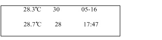主机LCD1602液晶显示从机1和从机2实时采集的温度值、时间和日期。如图10-6所示。从机1温度为28.3℃,从机2温度为28.7℃,温度上限为30℃、下限为28℃,当前日期为5月16日17点47分。