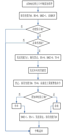 (9)从机机接收主机发送的从机地址和温度上限值采用奇校验(每帧数据的第8位(即D7)为奇校验位);从机发送匹配地址和采集到的温度值时采用累加和校验。