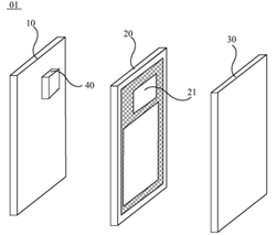 上图1为该专利提出的一种移动终端01结构示意图,主要包括显示模组10、中框20以及壳体30。其中,显示模组10和中框20在壳体30内,且中框20位于显示模组10靠近壳体30一侧。