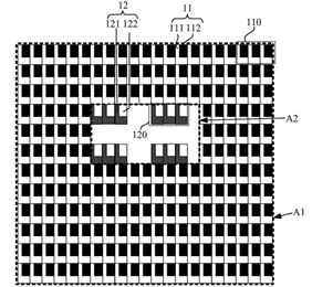 图 2 主要分成第一显示区A1和第二显示区A2两大部分,它们各设有对应的像素阵列,且每个像素阵列均包含多个亚像素。其中,第一/二发光器件111/121和与相应发光器件电连接的第一/二驱动电路112/122分别构成了第一亚像素11和第二亚像素12。