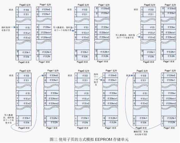 图三介绍了使用子页的方式实现Flash 模拟EEPROM的数据处理方法。