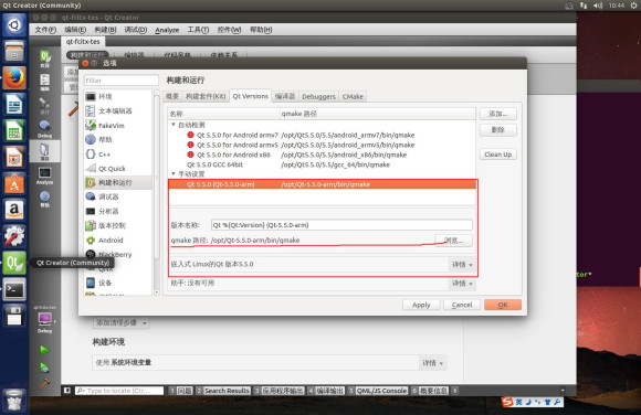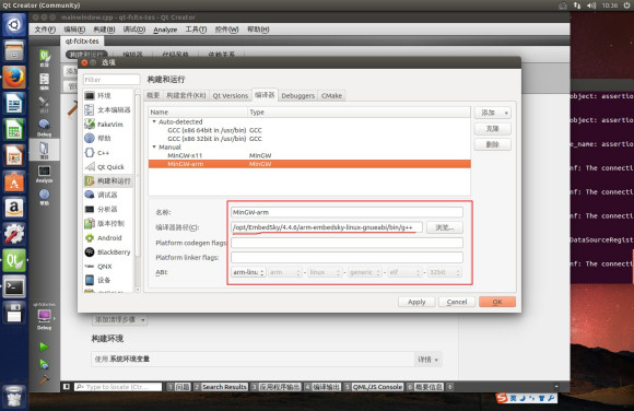 6、问题:Ubuntu 14.04中Qt Creator交叉编译ARM程序的时候: arm-embedsky-linux-gnueabi-g++: Command not found