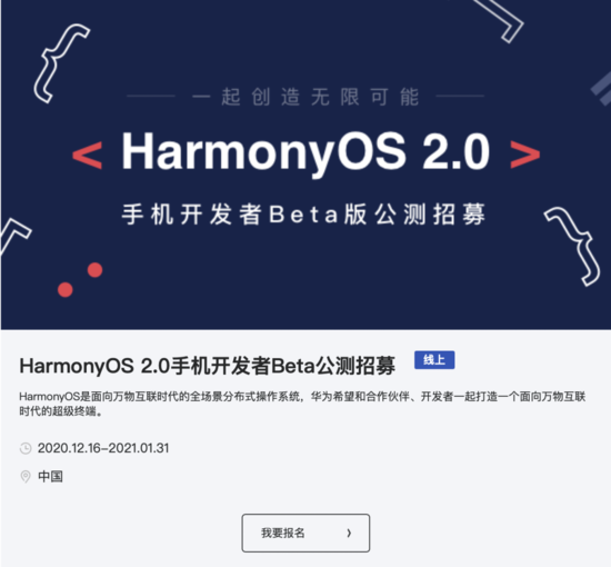 从 12 月 16 日起,华为面向开发者提供了两种下载方式:一种是从 HarmonyOS 官网下载 DevEco Studio 2.0 Beta3 版本,运行该版本自带的远端模拟器即可。另一种则是去官网报名参加 HarmonyOS 2.0 手机开发者 Beta 活动,审核通过后你会收到官网发送的公测邀请邮件,根据邮件内容指引,即可获得 OTA 推送。