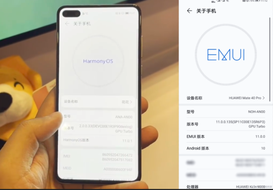 简单点来讲,就是 HarmonyOS 2.0 的系统底层为 Harmony,EMUI 11 则是 Android,其他 UI 设计和交互体验基本没变。从曝光截图可以看出,HarmonyOS 2.0 相当于 EMUI 11 的翻版,两者之间最大的不同在于前者版本型号显示为 HamonyOS 11.0.1,取消了 Android 版本信息栏。
