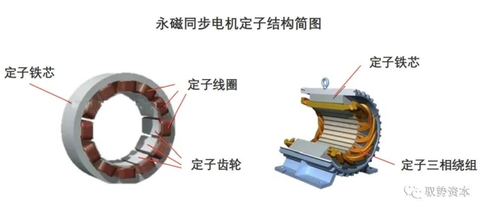 永磁同步电机主要由定子、转子与绕组、端盖等机械结构组成。其中,定子与转子铁芯的质量与性能直接决定了驱动电机的能效及稳定性等关键指标,价值占比分别达到永磁同步电机总价值的19%与11%。