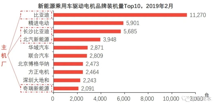 以比亚迪、北汽新能源、厦门金龙等为代表的主机厂借助技术优势与供应链资源已开始装配自主研发的驱动电机;