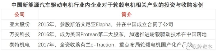 中国轮毂驱动电机技术起步较晚,随着中国大力推进新能源汽车产业及相关技术的发展,以亚太机电、万安科技等行业内企业与国际厂商通过合资合作,快速推动轮毂驱动电机的发展与在新能源汽车中的应用。