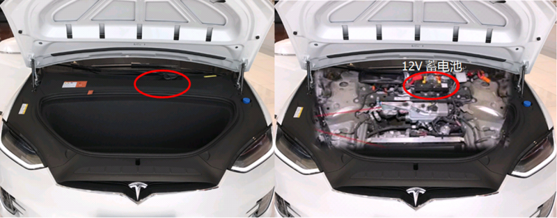 Model X 蓄电池就在前备箱盖板下