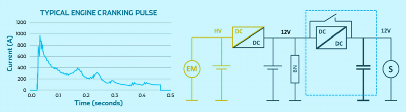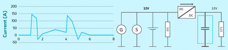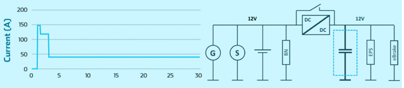 ·电动助力转向系统(EPS)和电子制动(EBS):镍氢、锂离子电池在“正常状态”下没有可用于可靠表征的操作信号,因此难以确定 SOH(健康状况)和 SOF(功能状态)。而超级电容器适合作为辅助能源使用。