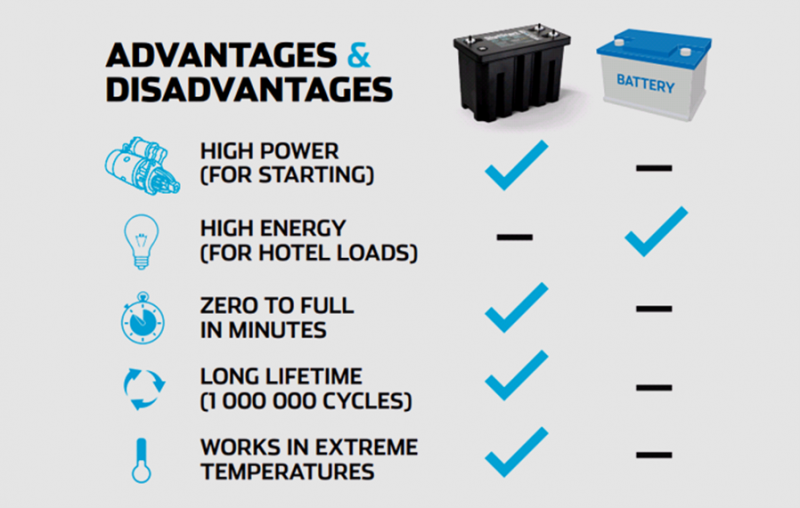 超级电容器与电池比较