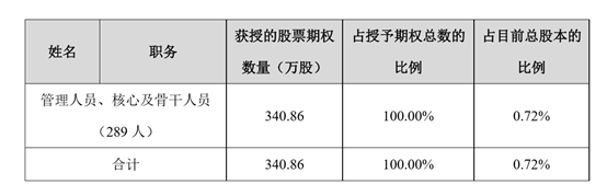 激励计划拟授予激励对象总人数为 308 人,包括公司公告本激励计划时在公司或其控股子公司任职的公司高级管理人员、管理人员、核心及骨干人员。