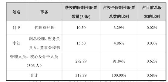 限制性股票激励计划:公司拟向激励对象授予 318.79 万股公司限制性股票,占本激励计划草案公告时公司股本总额 47,162.6671 万股的 0.68%,限制性股票为一次性授予,无预留权益。