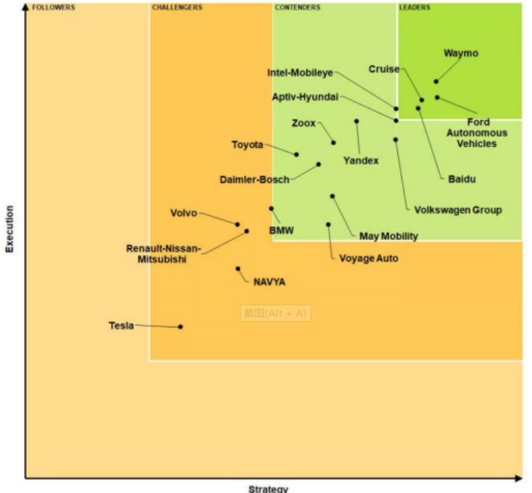 (市场研究机构 Navigant Research,2020 年自动驾驶排行榜单)