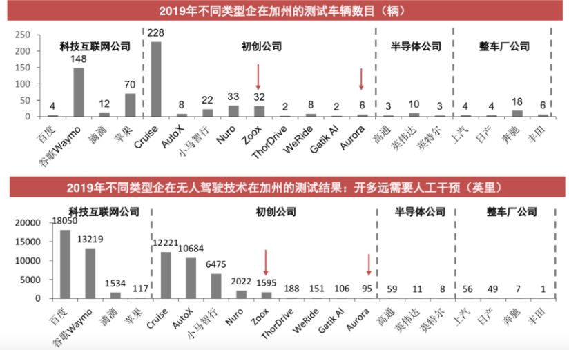从 2019 年 DMV(加州车辆管理局)的数据来看,Zoox 在测试车辆还是人工干预数据上的排名都比较靠后。从这一侧面看到,Zoox 在距离头部的百度、Waymo、Cruise 等公司还是有相当差距的。