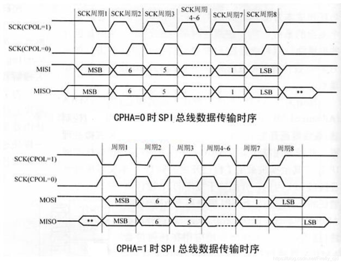 关于SPI从设备,在空闲的时候,是高电平还是低电平,即决定了CPOL是0还是1;