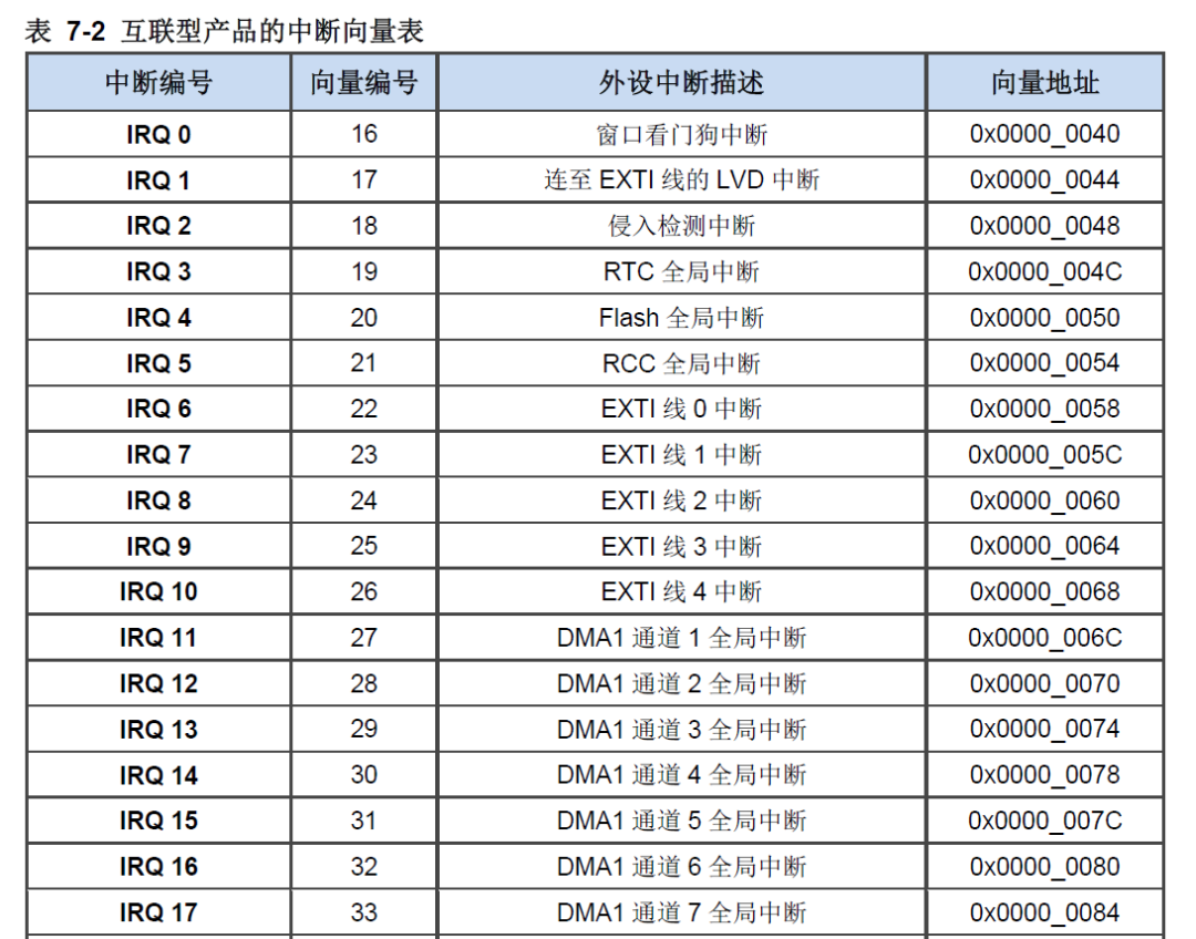 中断7(外部中断1)的抢占优先级为2,响应优先级为0。