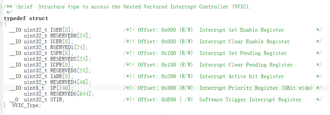 __IO uint32_t ISER[8]; //中断使能寄存器组