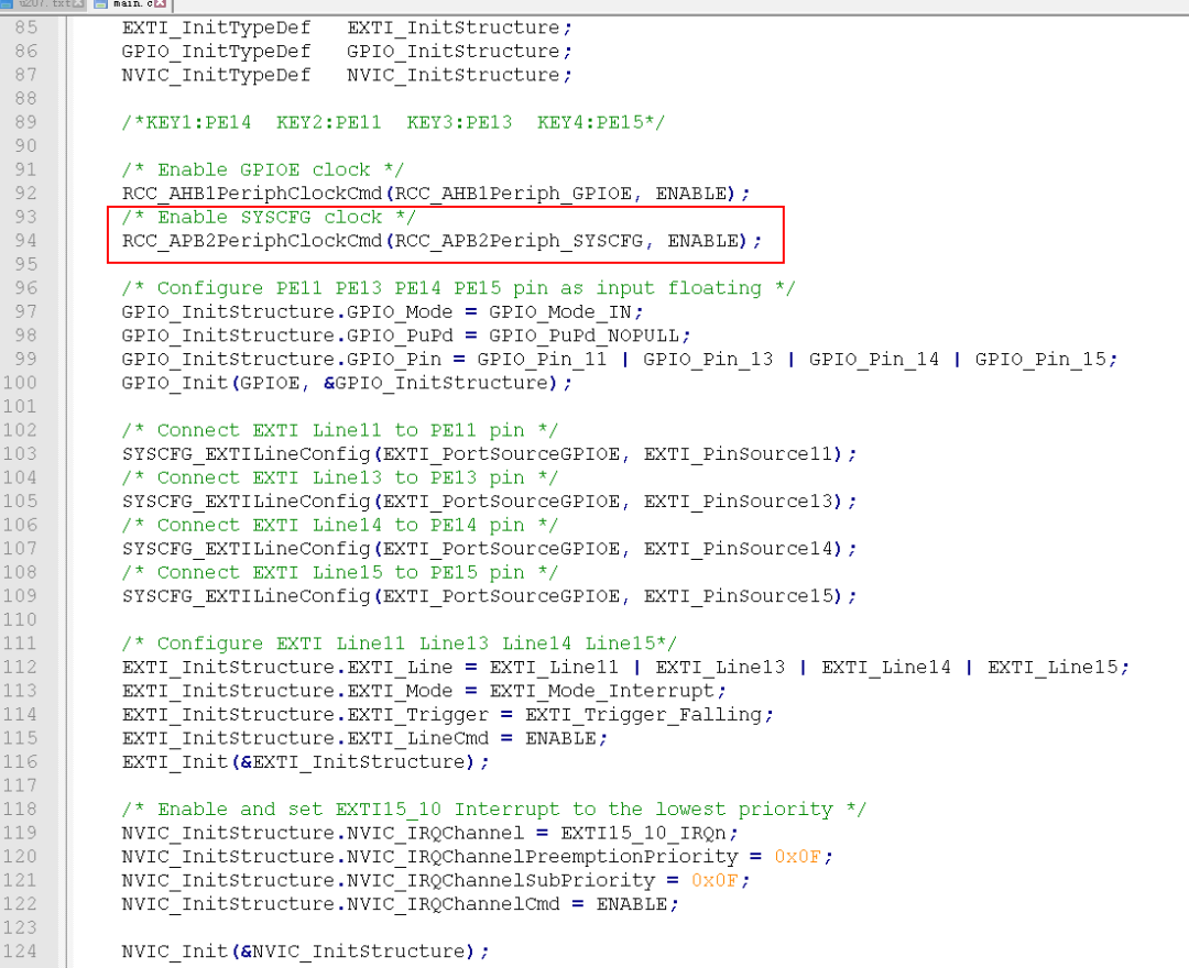 只要用到外部中断,就一定要打开SYSCFG时钟