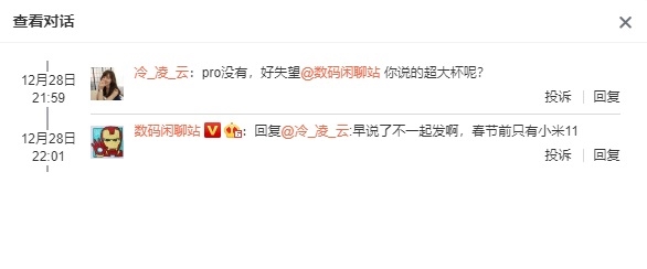 现在,有网友在微博上发文称,在春节之前只有小米11基础版,小米 11 Pro 版本只能在春节(2月12日)之后发布了。