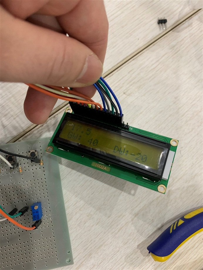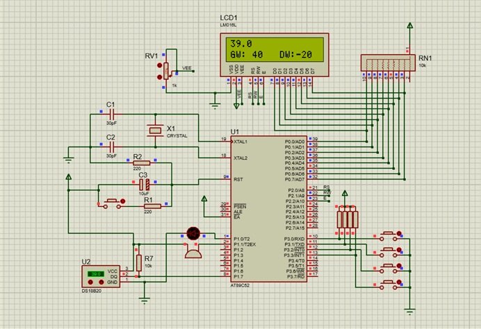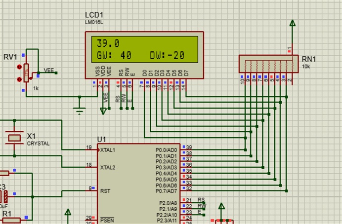 采用LCD-1602A液晶显示器件,液晶显示平稳、省电、美观,更容易实现要求,可操作性强,也易于读数,采用RT1602两行十六个字符的显示,能同时显示其它的信息如日期、时间、星期、温度。