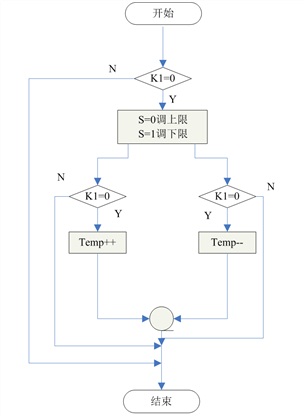 按键是用来设定上下限报警温度的。具体的程序流程图如图1-4所示。
