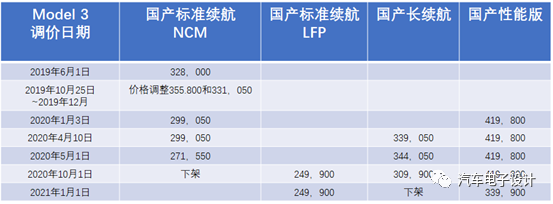 图 2 国产 Model 3 的一路调价