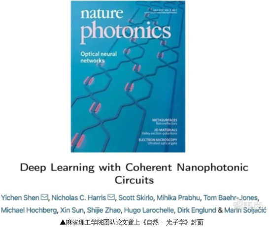 1 个月后,主创团队的研究成果登上顶级期刊《自然 · 光子学》的封面,论文描述了一种利用光学干涉进行神经网络计算的创新方法。当时,国际著名光学科学家、斯坦福大学终身教授 David Miller 评价称:“这一系列研究成果极大地推动了集成光学未来取代传统电子计算芯片的发展。”
