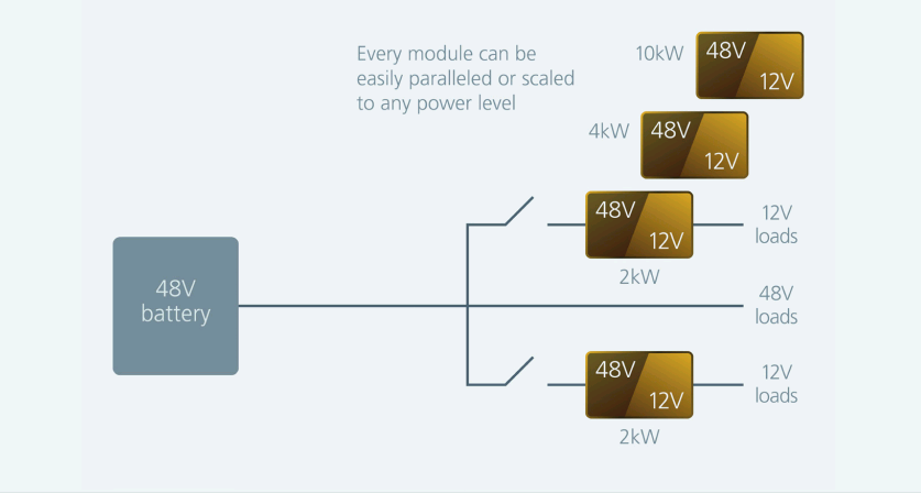 那么,就可以使用适当粒度和可扩展性级别的电源模块,然后很容易并联起来满足一系列具有不同动力系统和底盘电气化要求的车辆。