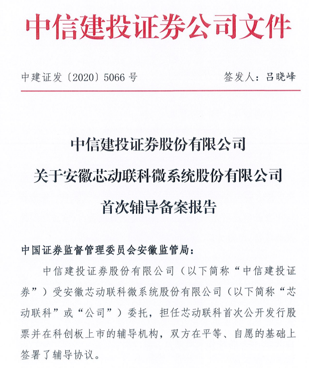 据披露,2020年11月,芯动联科与中信建投证券签订了《安徽芯动联科微系统股份有限公司与中信建投证券股份有限公司关于首次公开发行股票并上市之辅导协议》,并已于2020年12月3日进行辅导备案登记。