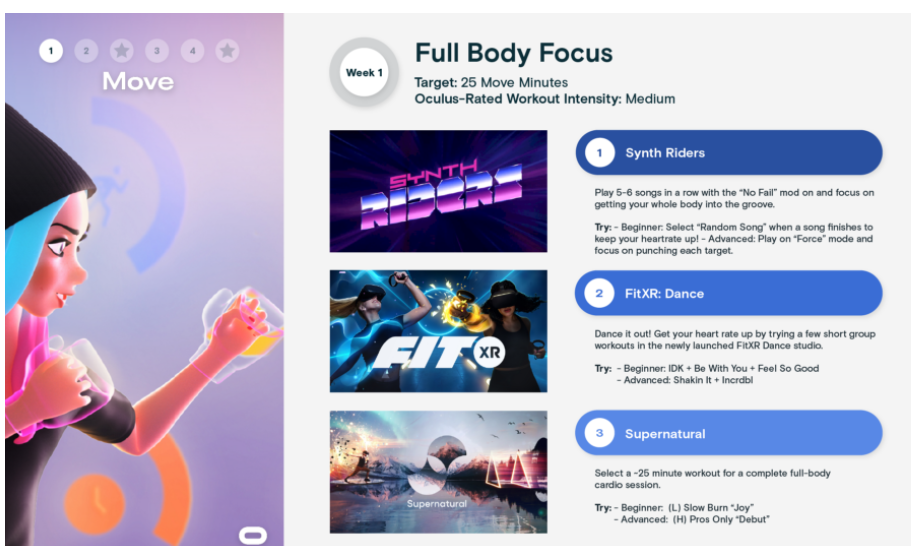 OculusMove可帮助跟踪你燃烧的热量,以及你在VR游戏或应用中进行体力活动的时间。你可以为自己设定目标,并跟踪自己的进度。