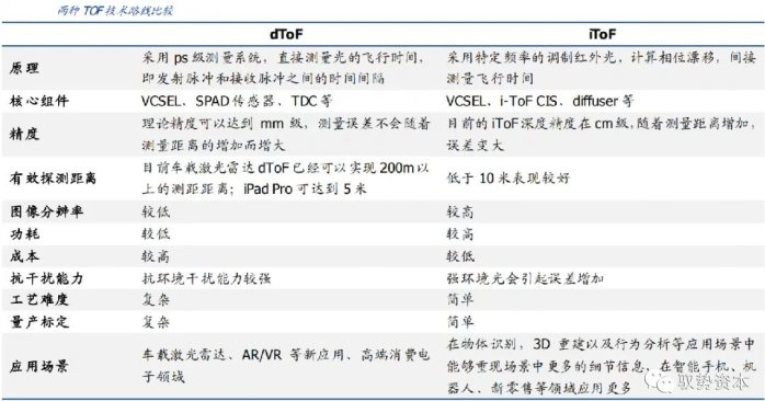 iToF传感器电路相对简单,难点主要在深度算法,安卓阵营自2018年引入iToF并推动其主流化。目前如三星、华为、OPPO、vivo等品牌均有在中高端机型中配臵,除此之外,iToF在物体识别,3D重建以及行为分析等应用场景中能够重现场景中更多的细节信息,因此还被广泛应用于机器人、新零售等领域。