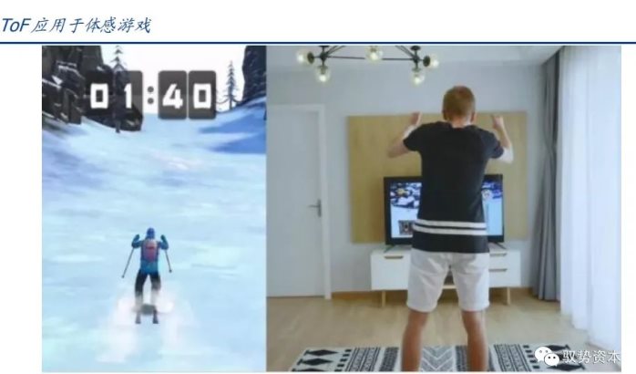 手势识别。目前不少手机具备的悬浮手势识别功能,不用直接接触手机屏幕,仅借由前臵ToF的对手势的3D感知,通过如在手机前挥挥手这样简单的操作来实现翻页、滚屏等普通操作。体感游戏相比前者更具交互性,通过TOF技术能够采集到被拍摄人的身体深度信息,捕捉和采集身体的动作,进行手势判定,控制预制的3D建模人偶的形象和动作,实现真人和3D虚拟形象跟随,用身体、动作和手势做游戏交互。