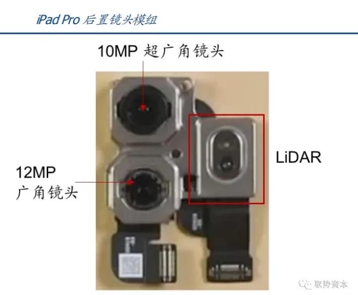 dTOF技术的应用有望推动AR内容的完善,加速消费级AR普及。苹果2017年便针对开发者们发布了用于iOS设备上AR应用开发的ARKit开发工具,2020年发布的iPad Pro为消费电子设备首次搭载dToF模组,可视为苹果针对5G时代AR领域的进一步布局。iPad Pro搭载的LiDAR(激光雷达扫描仪),采用Sony 3万像素10μm dTOF图像传感器,SPAD阵列的探测器,并集成了Lumentum的VCSEL芯片和TI的VCSEL驱动芯片,能达到ps级时间分辨率,可实现5米范围内的3D感知与成像,具备更快的AR建模速度、更高的测量精度和更少的抖动、错位。