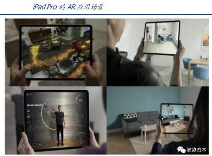 AR室内设计。2020款iPad Pro使用了dToF LiDAR技术,通过这一技术可以获得3D空间的深度信息,建立详细的室内环境空间数据,模拟出摆放了新家具后的情况。宜家的IKEA Place应用,利用AR让家居产品的外观和在家中的摆放效果直接呈现在用户眼前。