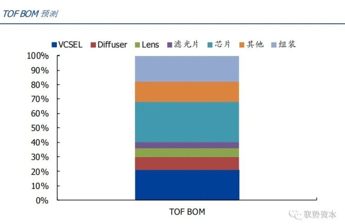 我们预计在这个TOF模组中,芯片的成本仍占主要的部分,大约占到整体BOM的28%~30%。