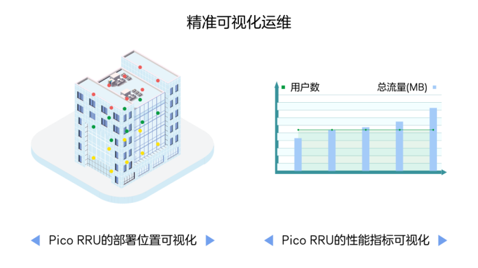 可视化管理就是通过生成建筑物模型,按楼层直观展示Pico RRU的部署位置信息,同时以Pico RRU单元为粒度生成性能数据,并给出针对性的网络优化建议。