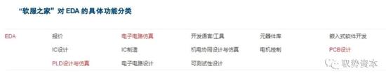 EDA是广义CAD的一种,是细分的行业软件。EDA软件设计凝聚大量数学,图论,物理,材料,工艺等学科知识,实现电子产品的自动设计。利用EDA工具,电子设计师可以从概念、算法、协议等开始设计电子系统,完成电子产品从电路设计、性能分析到设计出IC版图或PCB版图的整个过程。经过几十年的发展,EDA工具也非常丰富,按照功能和使用场合,可以分为电路设计与仿真工具、PCB设计软件、IC设计软件、PLD设计工具等。