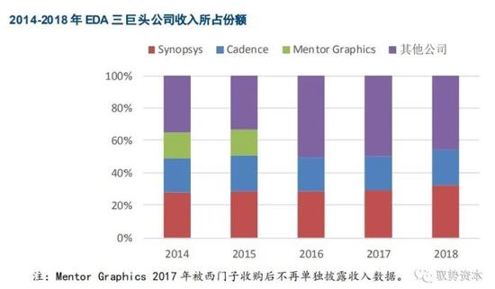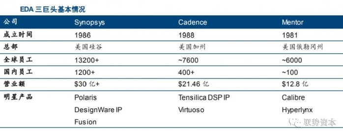 EDA三巨头主要指EDA市场份额占据前三位的三家企业Synopsys、Cadence和被西门子收购的Mentor Graphics。
