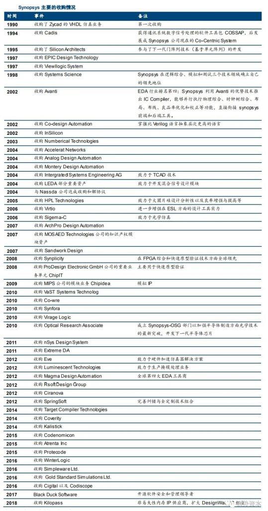 自1986年成立以来,Synopsys通过发起几十余项并购交易,不断寻找那些已经被市场证明成功的产品及其企业,通过滚动并购操作达到了扩大业务规模、进行技术整合的目的。
