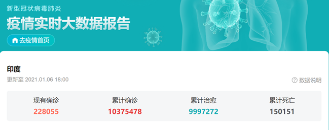 2020年,全球各国经历了前所未有的疫情侵袭,许多海外国家,迄今仍笼罩在这团阴霾当中。印度,首当其冲。截至2021年1月6日,印度现有确诊病例228055人,累计确诊已经突破1037万人。