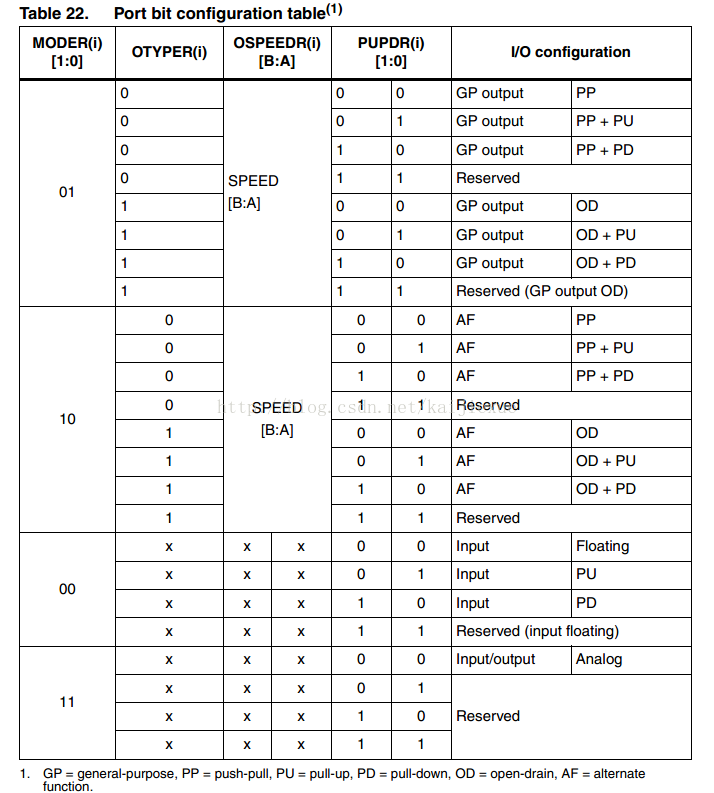 Perpheral‘s Alternate Function:对于ADC/DAC,配置IO为模拟;对于其他外围功能,配置GPIOx_MODER、GPIOx_OTYPE、GPIOx_PUPDR、GPIOx_OSPEEDER