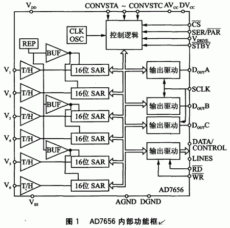 图1为AD7656的内部功能框图。