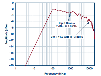 图7显示了通带平坦度,证明在RF ADC之前增加一个THA可以实现10 GHz的带宽,从而充分扩展AD9689的模拟带宽。