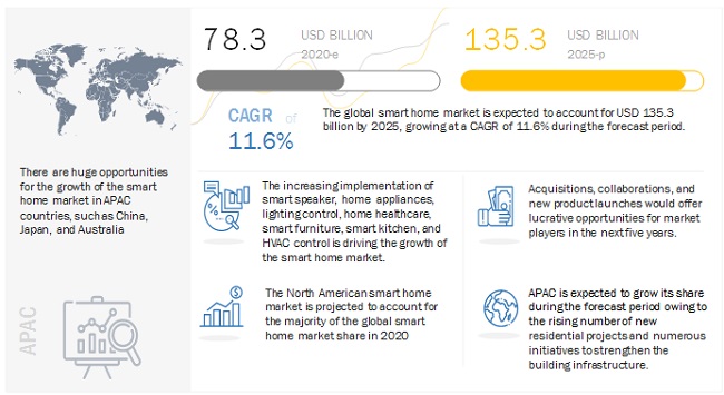 让我们的家居设备变得更聪明,更好的服务于生活中去,是我们每一个家庭的愿景,为此众多智能家居产品不断在市场上涌现,市场规模也在不断扩大。根据MarketsandMarkets发布新的市场研究报告,全球智能家居市场规模预计将从2020年的783亿美元增长到2025年的1353亿美元,预测期间复合年增长率为11.6%。